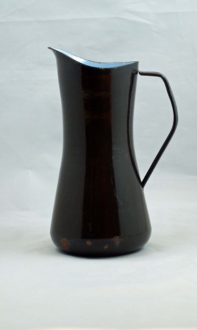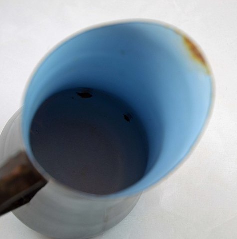 Kande fra 1950'erne i emaljeret jern, sort med lyseblå emalje på indersiden