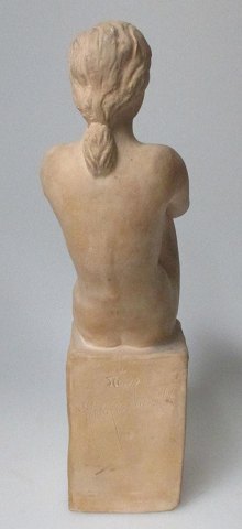 Mogensen, Jørgen (1927 - ) Danmark: Siddende nøgen kvinde. Rødler. Signeret.: Jørgen M 44. H.: 24,5 cm. Stemplet.: NoBo.