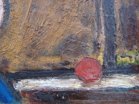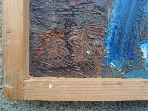 Bagpå - "Figur i blåt ved vindue" - "Peder Brøndum Sørensen 1967"