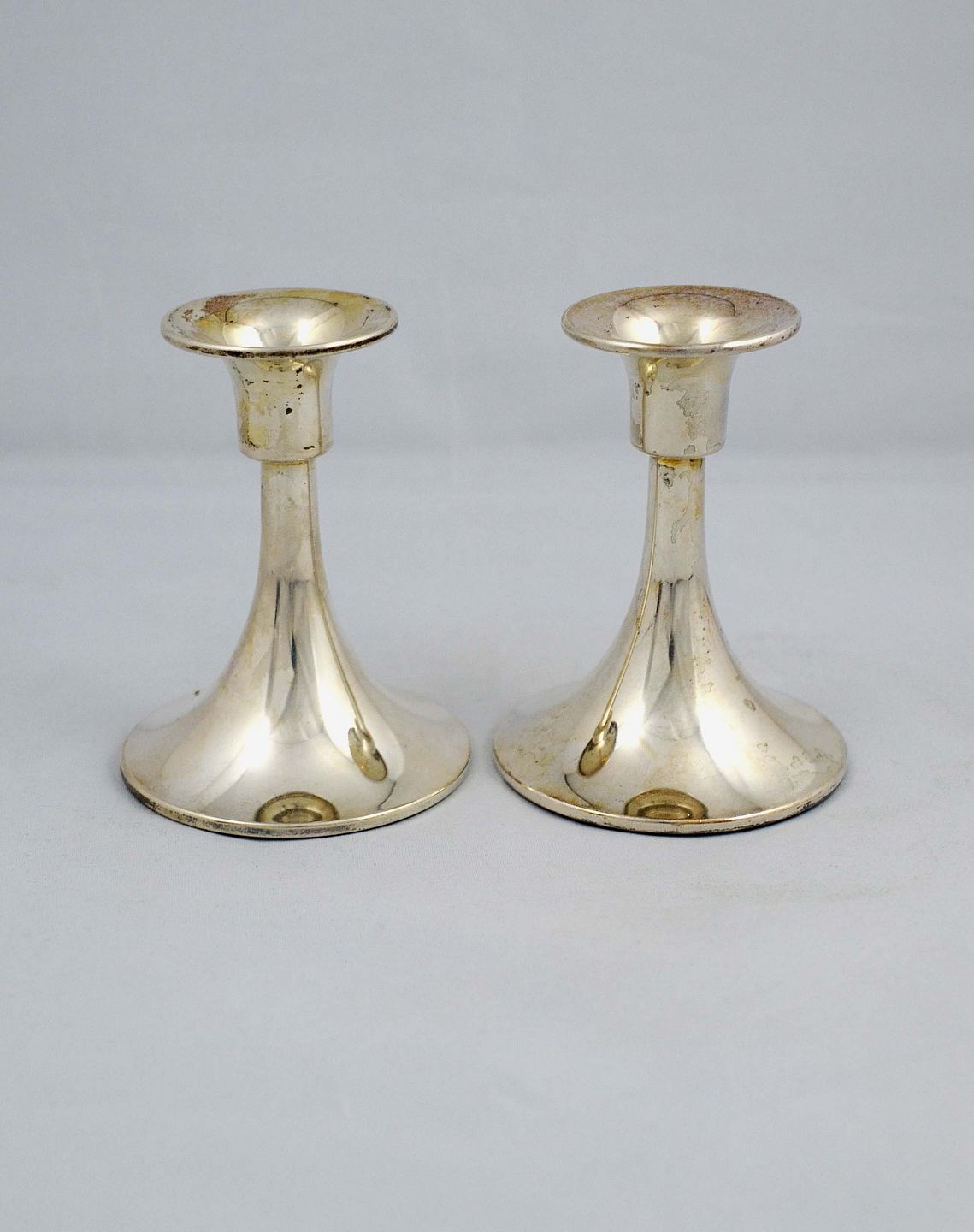 Et par sølvlysestager uden stempel.