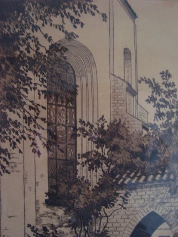 Radering af Søren Frank - Portal ved Budolfi Kirke, Aalborg.