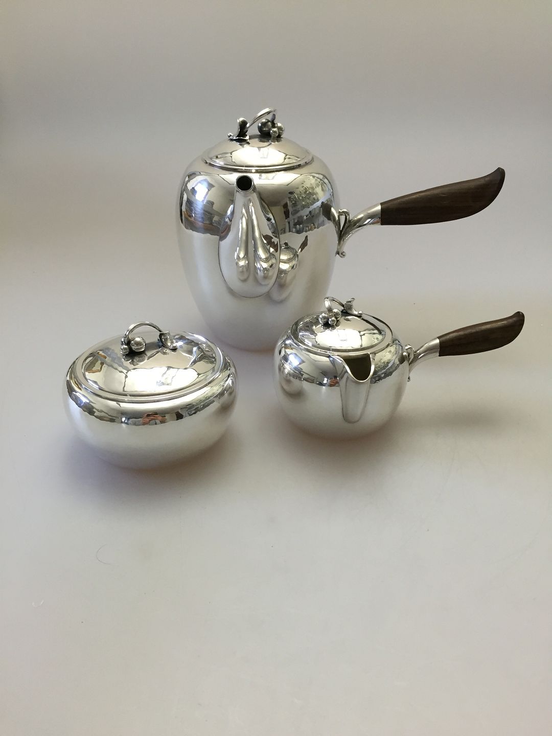 Georg Jensen Sterling Sølv Kaffekande, flødekande og sukkerskål af Harald Nielsen No 875