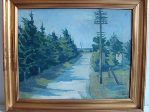 Maleri af Mogens S. Andersen - Ved haven til Blåvand Kro 1933.
