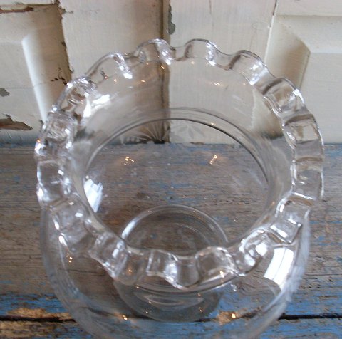 Smukt tysk 1800tals fiskeglas med bølget kant og ætset dekoration.