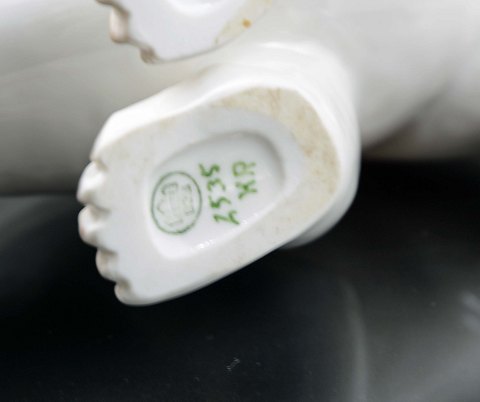 Figur af Isbjørne unge(nr. 2535) fra Bing og Grøndahl. Figuren er i meget pæn stand. H: 8,5 cm. L: 18 cm. Der er 4 forskellige figurer i denne serie. Figurerne findes også i kongelig udgave.