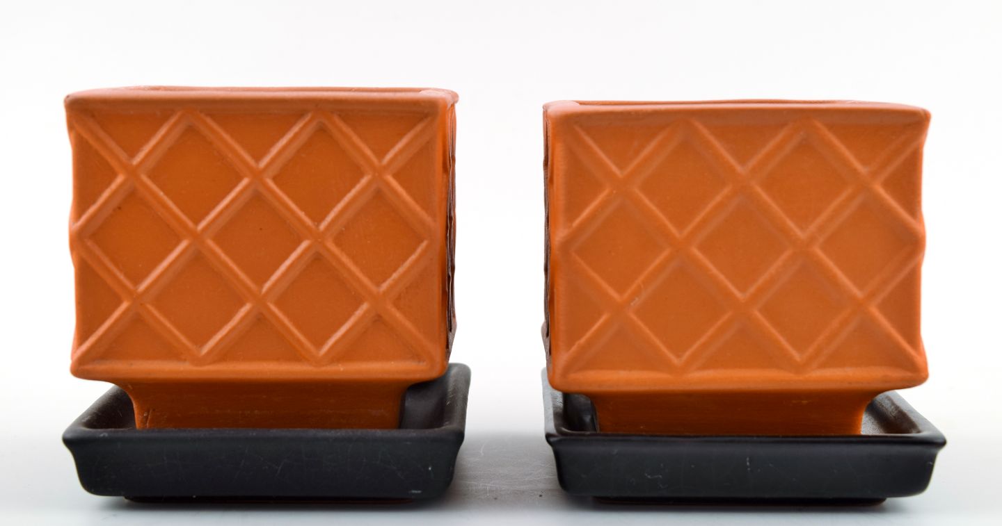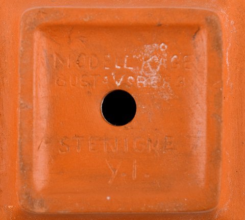 Gustavsberg, Wilhelm Kåge, et par urtepotteskjulere i rødt lertøj.