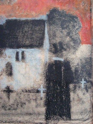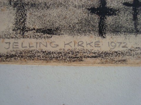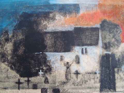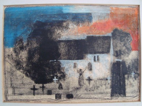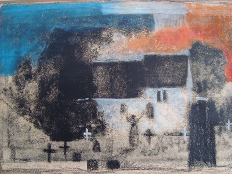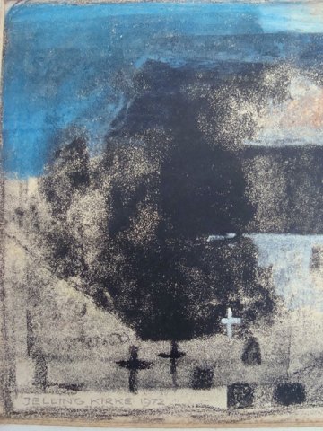 Pastel af Poul Møller - Parti fra Jelling Kirkegård 1972.