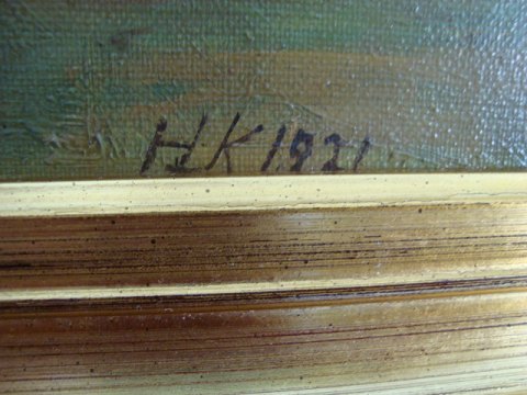 Maleri af Hans Knudsen 1921 - landskab med gårde.
