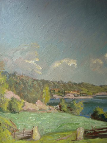 Udsigt fra kunstnerens sommerhus i Torpön ved Sommensøen i Östergötland.