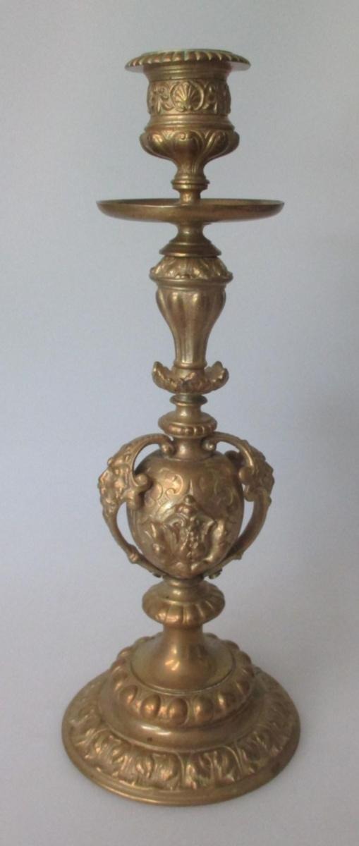 Bronzestage, 19. årh. Historicisme. Dekoration i form af maskeroner og akantusblade. H.: 24 cm.