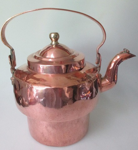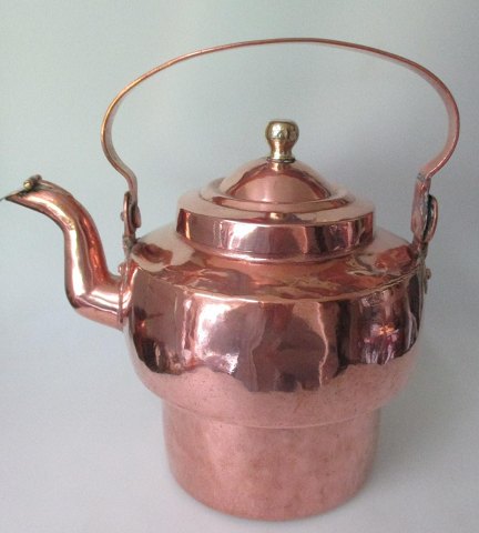 Vandkedel i kobber med sæk, 19. årh. Danmark. Stemplet.: Harldkjær Kobber Fabrik, 1848 - 1863. Med hank og låg med messingknop. H.: 20 cm. Dia.: 19,5 cm.