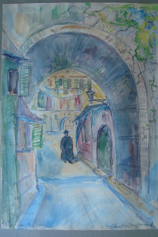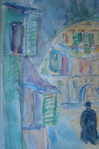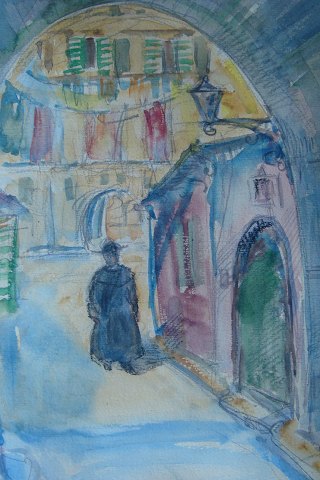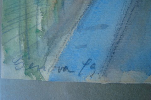 Akvarel af Aksel Lundgreen - Parti fra Genova, Italien 1949.