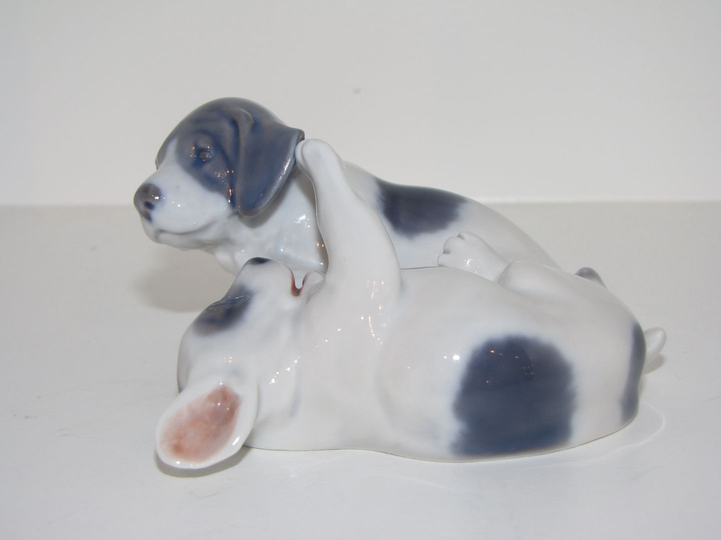 Royal Copenhagen hundefigur, legende pointer hvalpe.