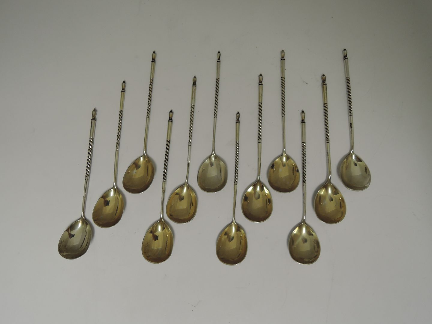 Russiske Theskeer. Sølv (84). 12 styk. Længde 12,5 cm