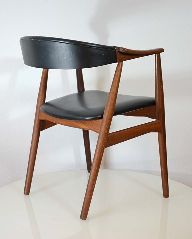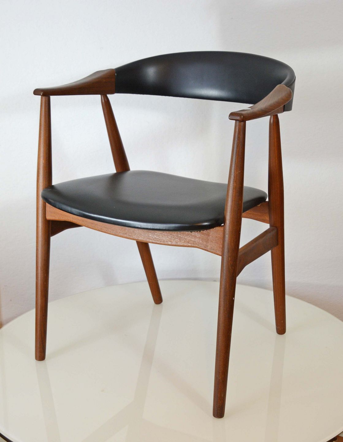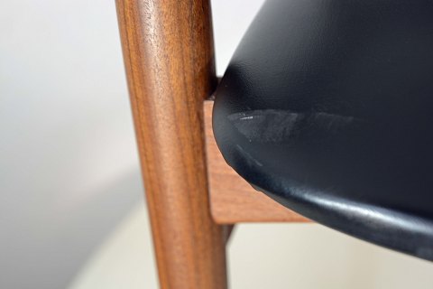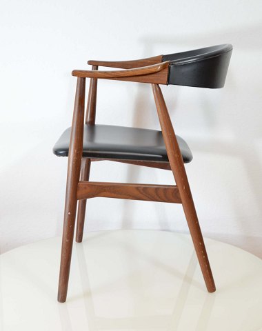 Armstol fra Farstrup møbelfabrik, 1960érne. Stel i massivt teaktræ betrukket med sort skai. Fremstår med et mindre brugsspor på sædet. Meget pæn stand.
