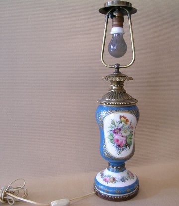 Porcelænslampefod bemalet, Frankrig 1870-80