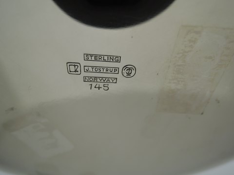 Rund skål med hvid emalje. J. Thostrup. Sterling (925). Diameter 22 cm.