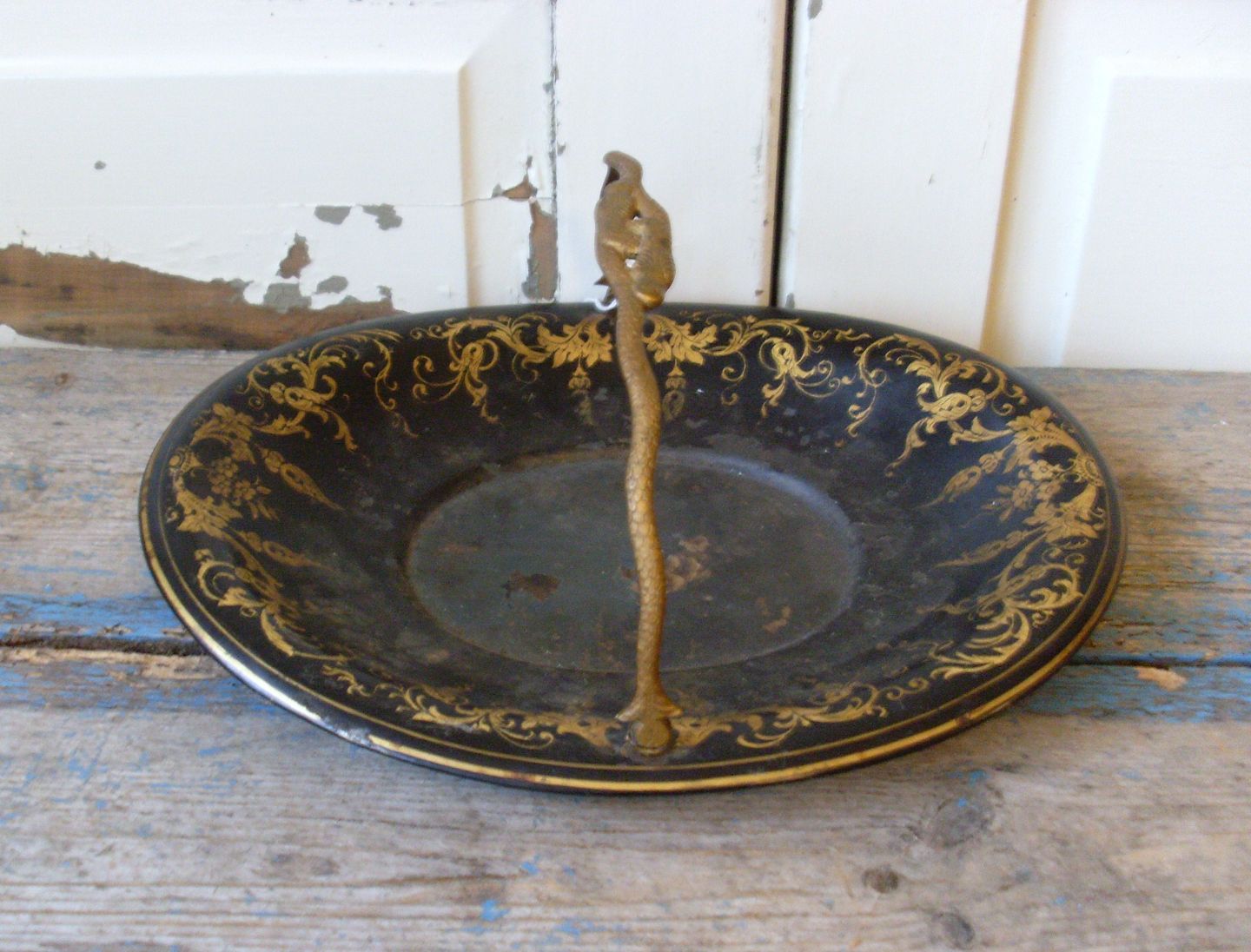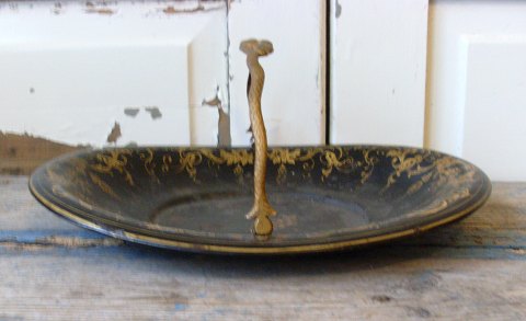 Smuk Victoriansk brødbakke i bemalet metal med hank i form af slanger.