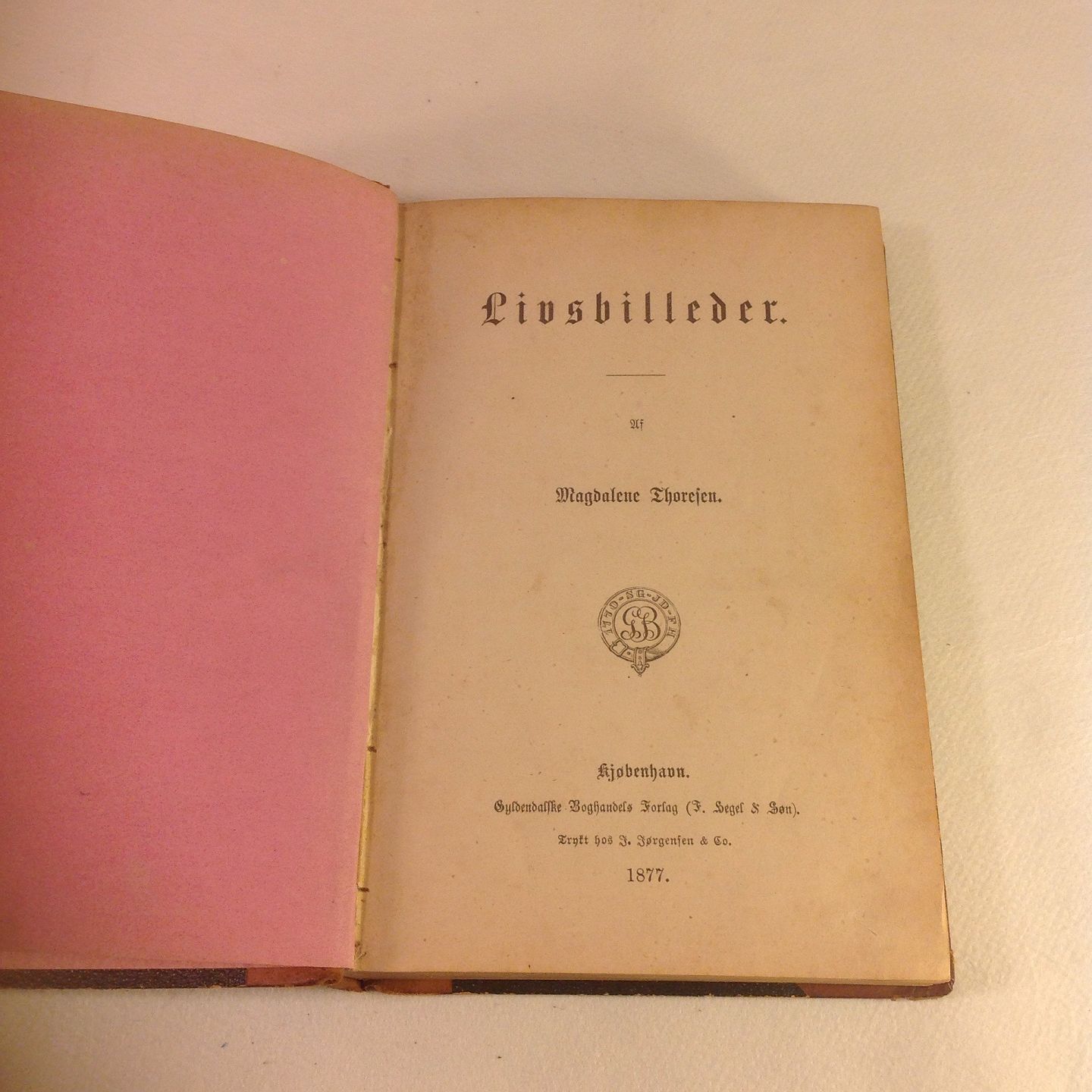 Livsbilleder Gyldendals Boghandels Forlag ( Hegel ) 1877. 332.Sider. Halvlæderbind med rig rygdekoration Pænt eksemplar Magdalene Thoresen, Anne Magdalene Thoresen, 3.6.1819-28.3.1903, forfatter. Hun modtog i 1842 et tilbud som lærerinde hos den norske provst og stortingsmand Hans Conrad Thoresen på Herøy i Søndre Sunnmøre, for dennes fem børn. Under opholdet her påvirkede norsk natur og folkeliv hende så levende at hun følte sig ligefrem genfødt. Provst Thoresen forelskede sig snart heftigt i T.s sydlandske skønhed, og efteråret 1843 tog han hende til ægte. I Bergen var hun med til at grundlægge den nye norske scene der foranledigede hendes første litterære virksomhed. På den tid kendte hun allerede Bjørnstjerne Bjørnson hvis strålende fremtoning aldeles havde overvældet hende; hun erklærede ham åbent sin kærlighed, men var ingen sinde blind for den store kollegas fejl og måtte ofte lide derunder. Gennem Bjørnson blev T. klar over sig selv og sit kald som forfatter. Han udgav hendes Digte af en Dame, 1860, og hans fortællinger har både i form og emne øvet stærk og afgørende indflydelse på hendes forfatterskab. Forholdet til Bjørnson var kølnet, og værre blev det efter udgivelsen af Min Bedstemoders Historie (Ved Løvfaidstid, 1867 optrykt i Livsbilleder, 1877), i hvis helt Bjørnson til sit store mishag mente sig portrætteret. . På sin 80-års fødselsdag var T. genstand for megen hyldest og fik både den danske og den norske fortjenstmedalje i guld. Siden 1891 fik hun dansk digtergage.