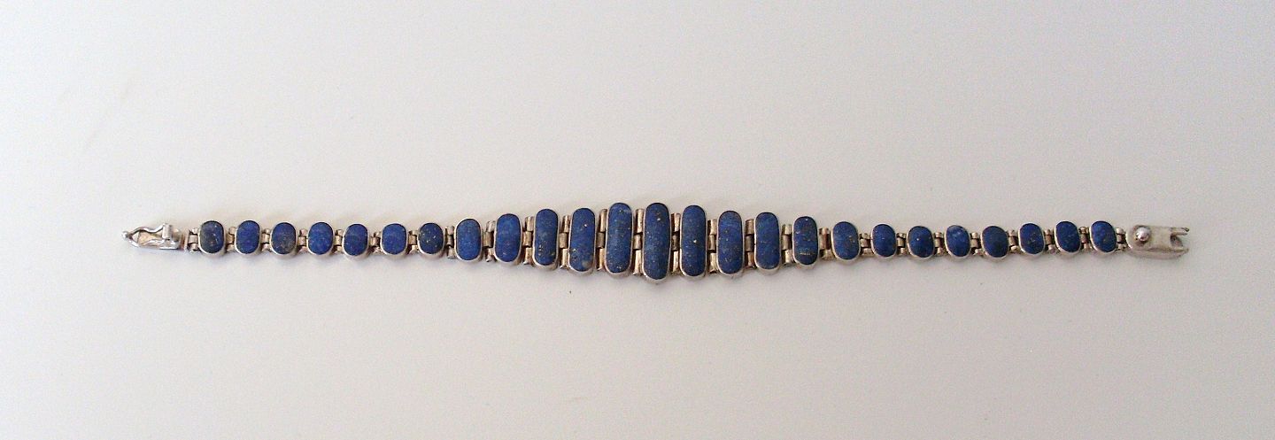 Meget smukt Art Deco armbånd i sølv med lapis lazuli
