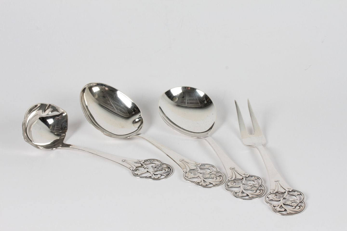 Serveringsskeer med floral mønster fremstillet af ægte sølv