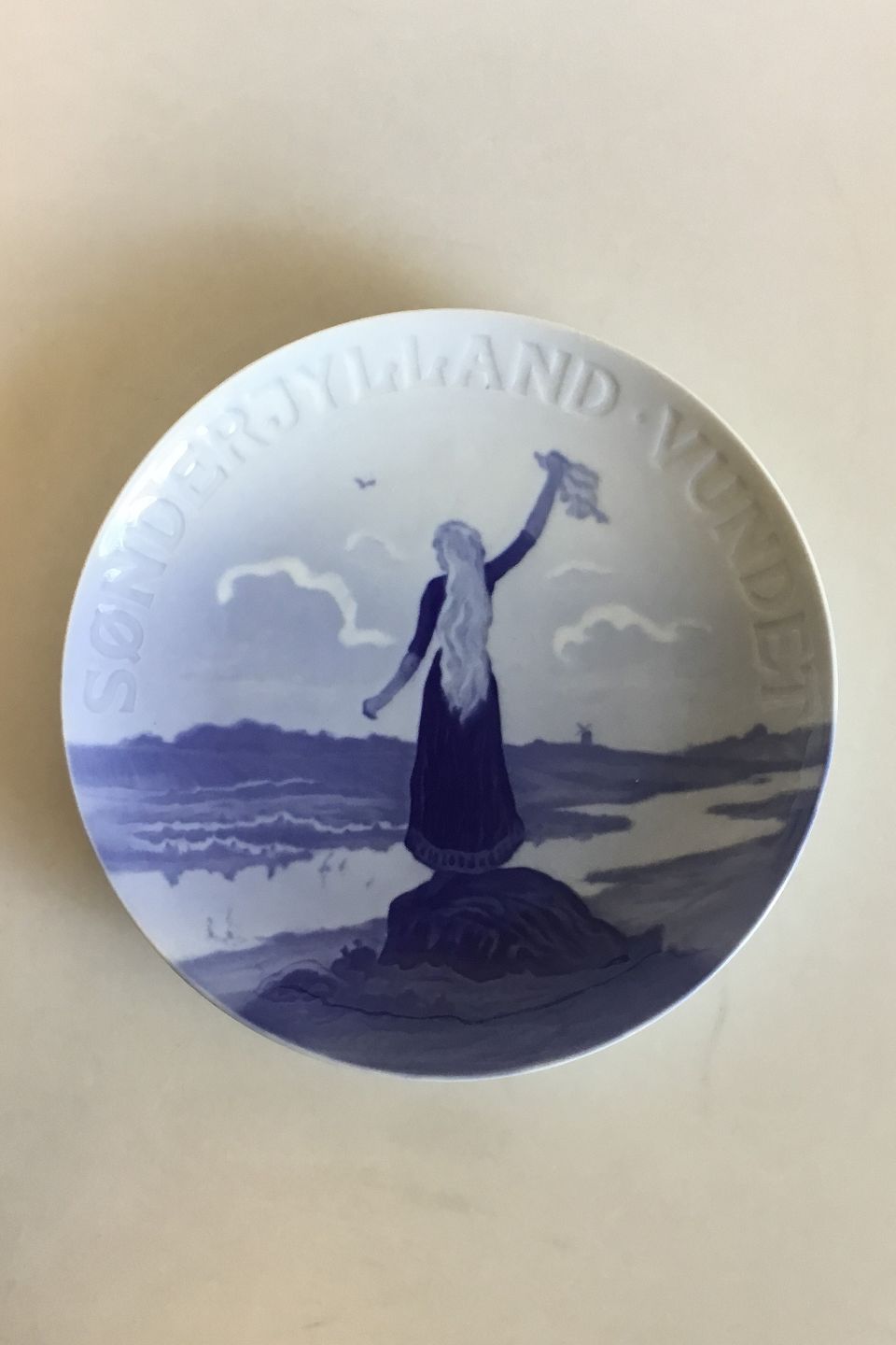 Bing & Grøndahl Mindeplatte fra 1919 BG-CM53. Måler 20,5 cm. Designet af Achton Friis. Sønderjylland kommer tilbage under dansk flag. Genforeningen.