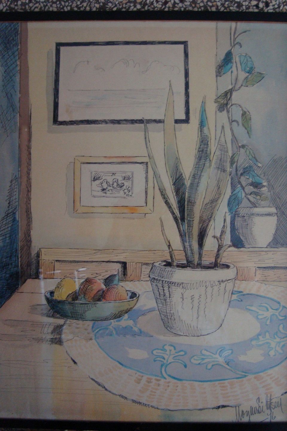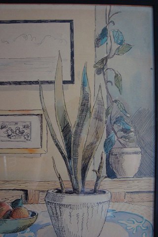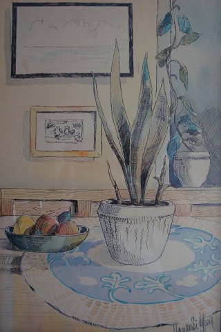Akvarel - Opstilling på bord ved vindue 1946.