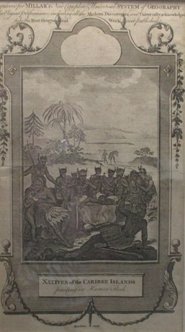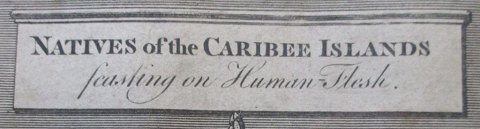Hawkins (19. årh.) England: Natives of the Caribee Islands feasting on Human Flesh. Kobberstik. 28 x 16 cm.