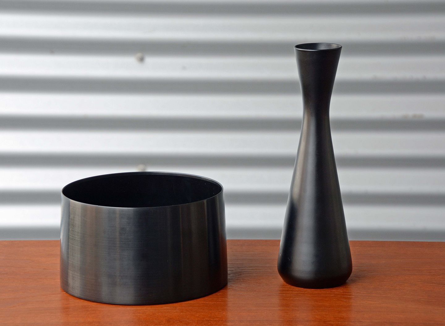 Skål i sort plast af Kristian Vedel design og vase i keramik af ukendt deign