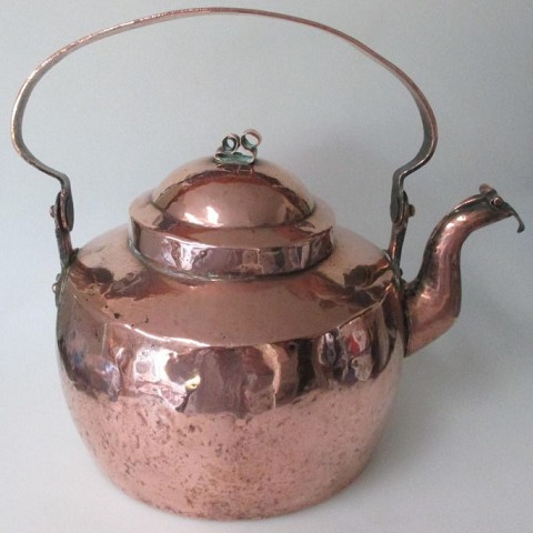 Dansk antik kobber keddel, 19. årh. Stemplet på hanken: O. A. Gundesen.