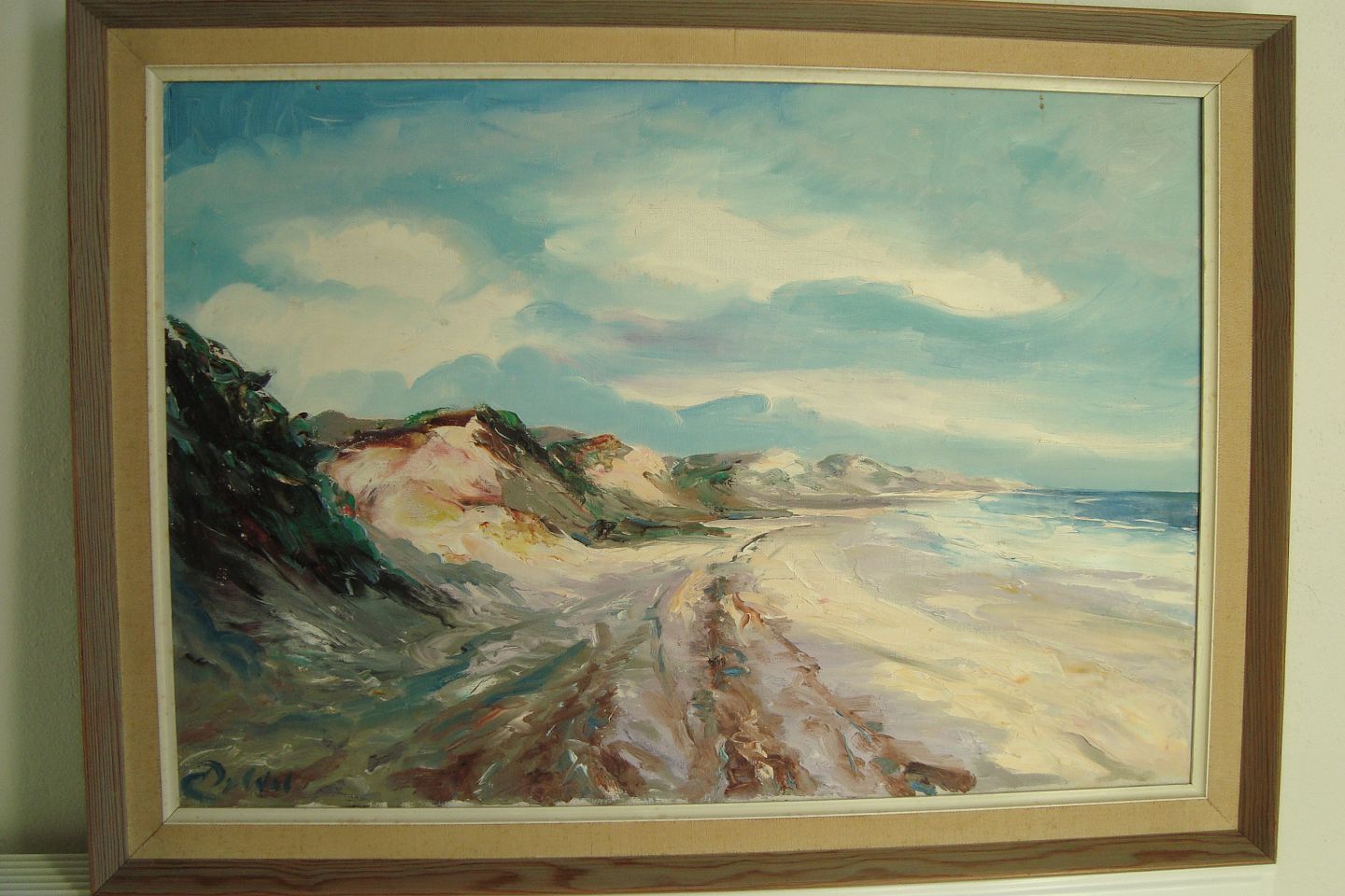 Maleri af Chr. Dybdal - Kystparti med klitter.
