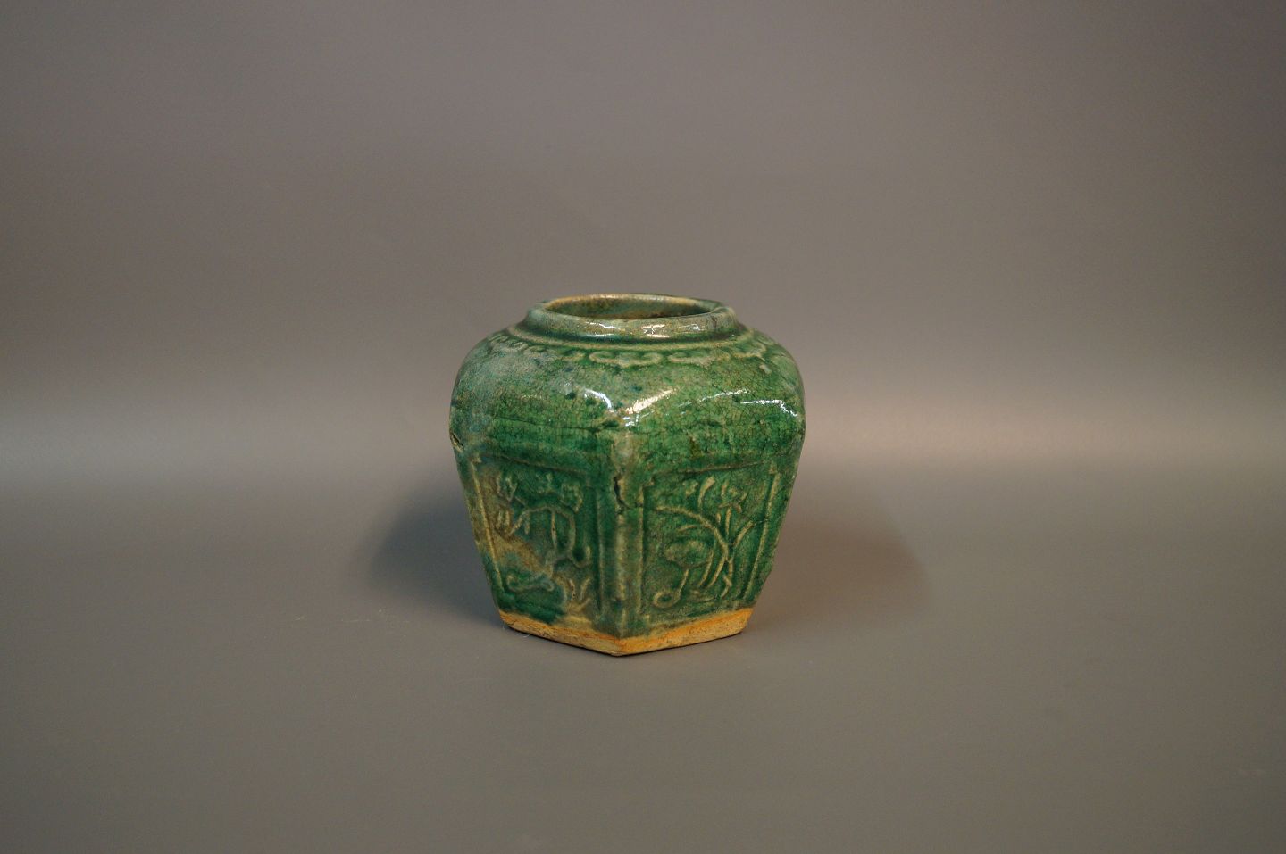 Kantet keramik vase med mørkegrøn glasur fra 1960erne af en ukendt keramiker.