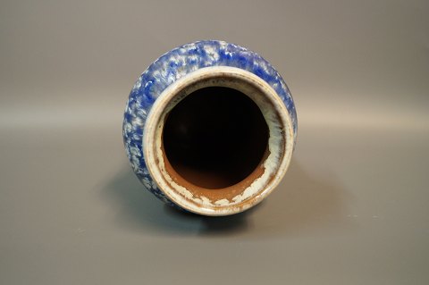 Keramik vase i lyseblå og hvid glasur fra Strehla - GDR med nummeret 1437.