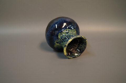Keramik vase med mørkeblå og grøn glasur fra 1960erne af en ukendt keramiker.