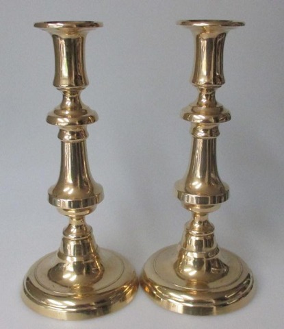 Par engelsk stager i messing, 19. årh. H.: 22 cm.