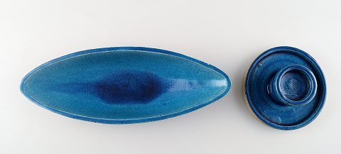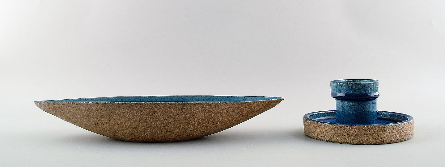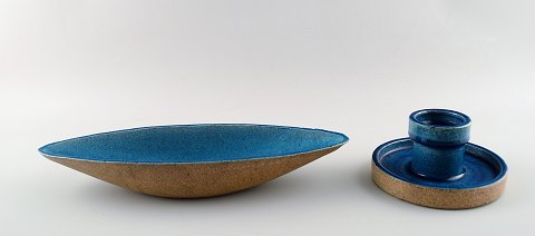 Kähler, HAK, glaseret stentøjsfad og lysestage. Nils Kähler.