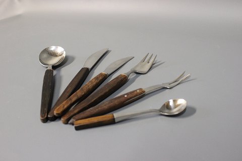 Bestiksæt i palisander bestående af spiseskeer, middags- og frokostknive samt middagsgafler, stegegafler og mokkaskeer. Sættet er Dansk Design fra 1960erne. Sættet er af 6 af hver bortset fra mokkaskeerne på 5 stk. I alt 35 dele.