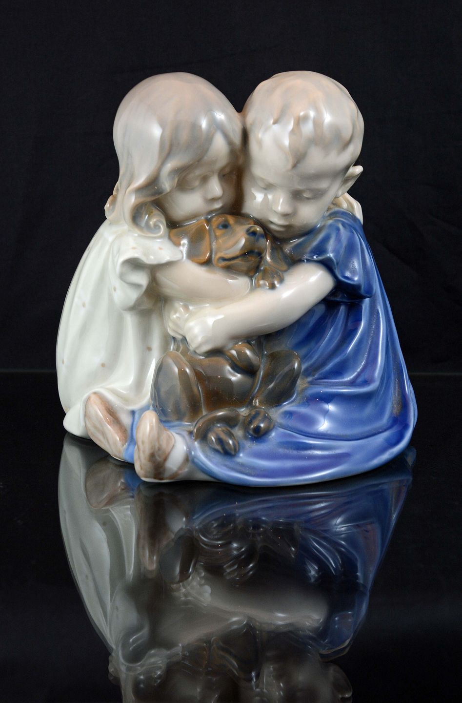 To børn med hund af Christian Thomsen for Royal Copenhagen.