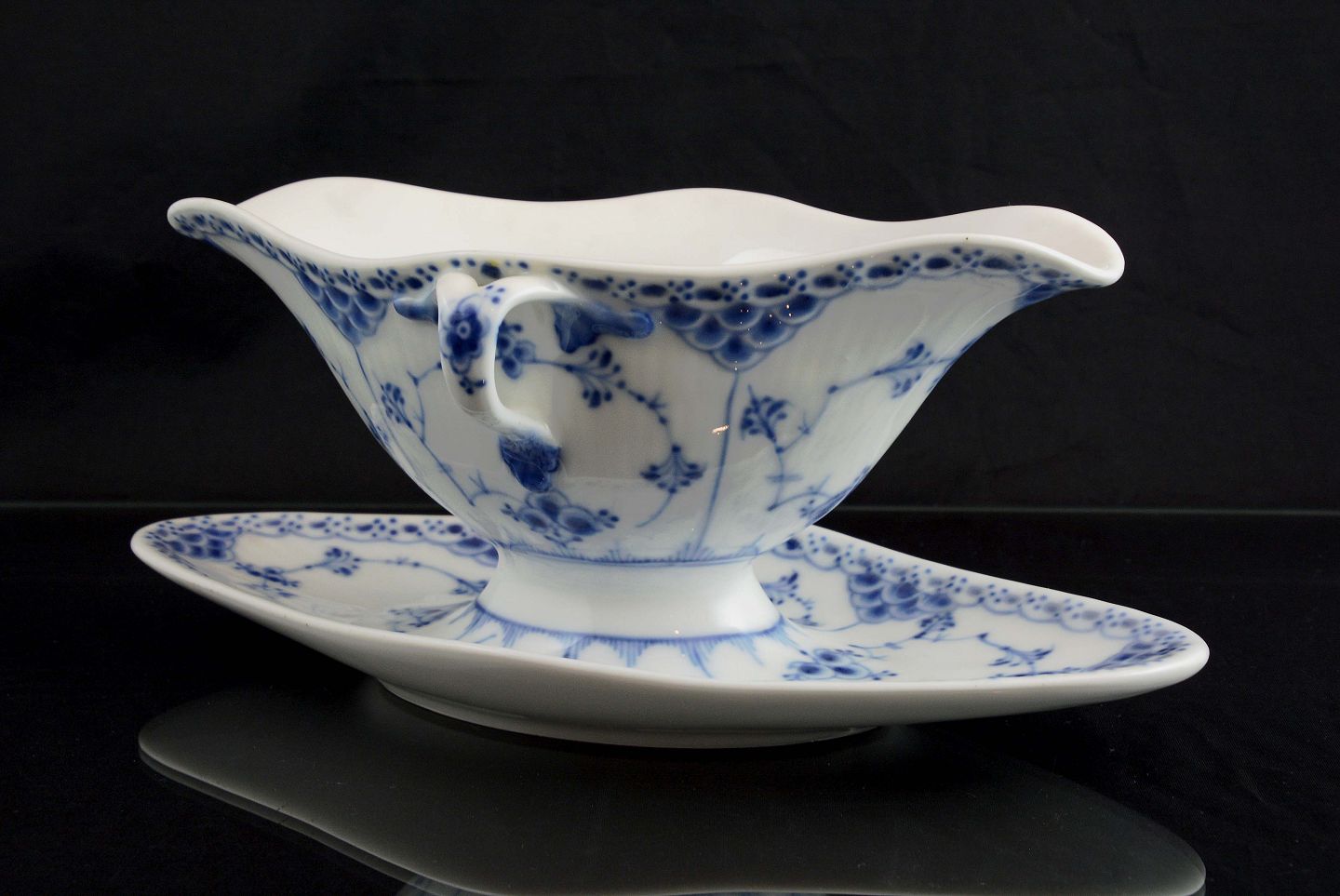 Saucekande med hanke (nr. 1/585) Kgl. halvblonde musselmalet fra Royal Copenhagen. 1. sort. Intakt.
