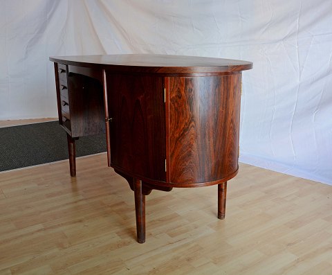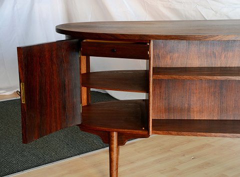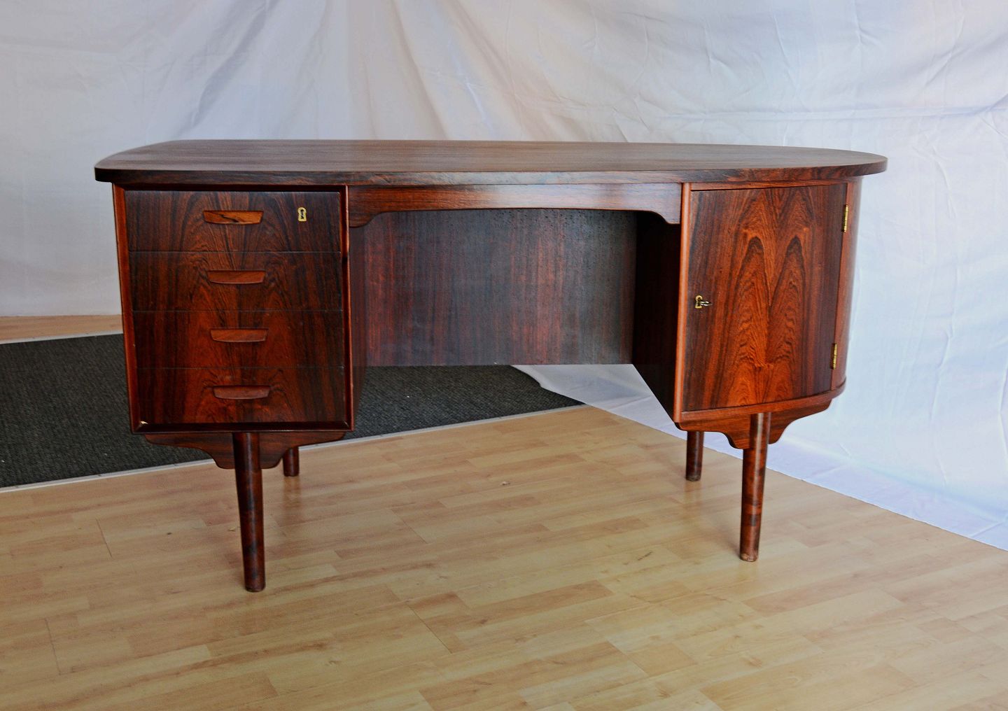 Vi køber skrivebord i palisander/eg/teak med æggeformet plade