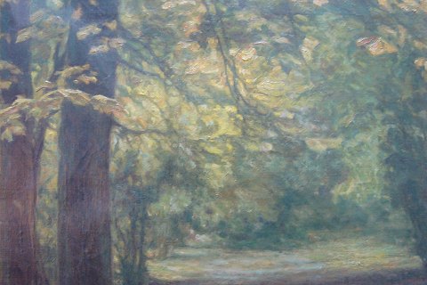Maleri af Sophus Jensen-Kromand - Skovparti med lysning 1933.