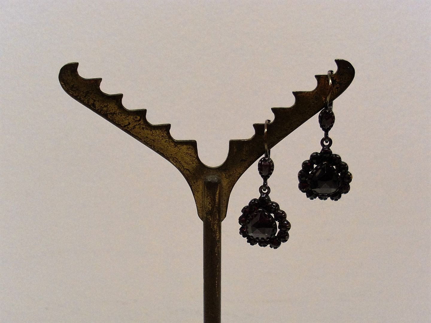Par meget smukke granat øreringe. Granater fattet i oxyderet sølv.