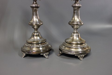 3 armet forsølvet lysestager. Lysetagerne er i Jugendstil og fra 1920erne.