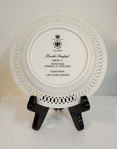 Bogfinke vægplatte (nr. 11414/616). Motiv nr. 4 i serien ”Danske sangfugle” af Leif Ragn Jensen for Bing og Grøndahl. Intakt. 1. sort.