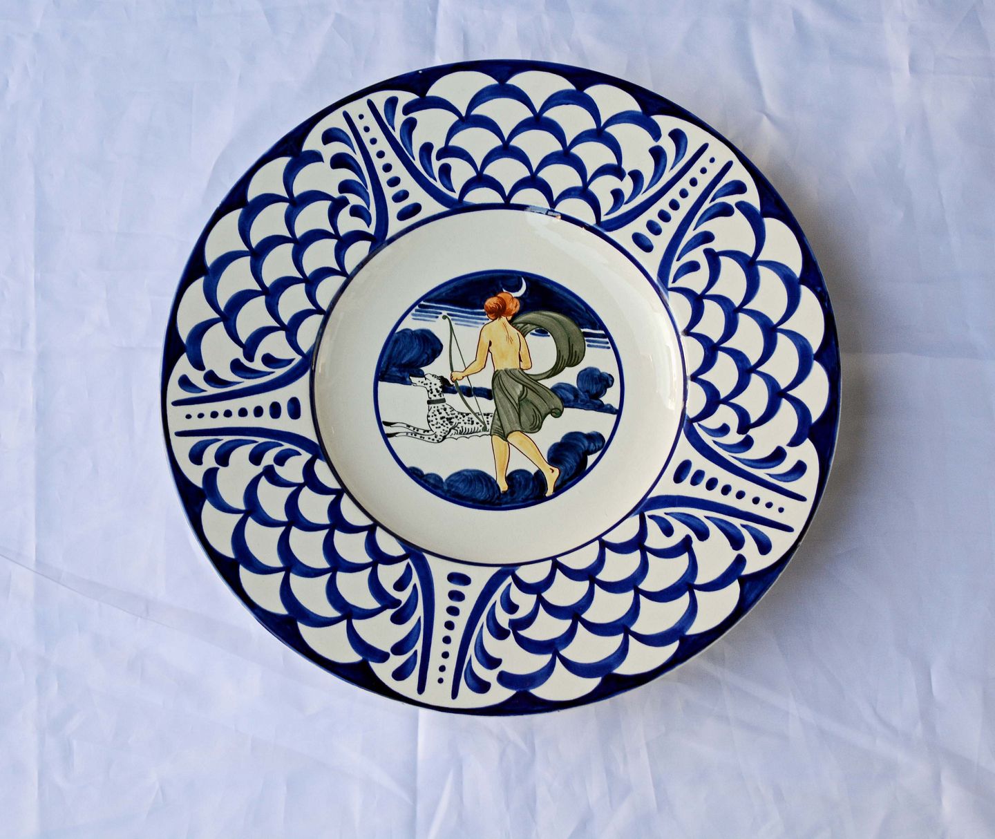 Meget stor fajanceplatte. Den er formentlig en unikaplatte.