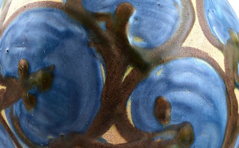 Flot glasur i mørkeblå nuancer. Stemplet.