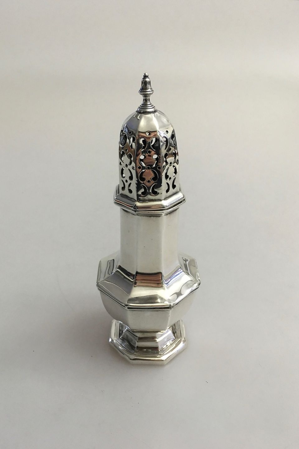 Elegant Engelsk Sukker Shaker i Sølv Produceret af Harrods. Shakeren har nogle knups her og der men fremstår i det store og hele i pæn stand.