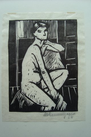 Træsnit af Albert Gammelgaard - Nøgen kvindelig model 1958.