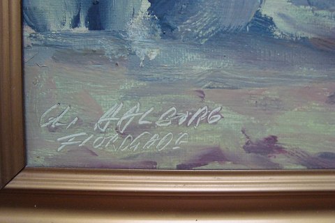 Maleri af Søren Bølling Hansen - Motiv fra det gamle Aalborg.