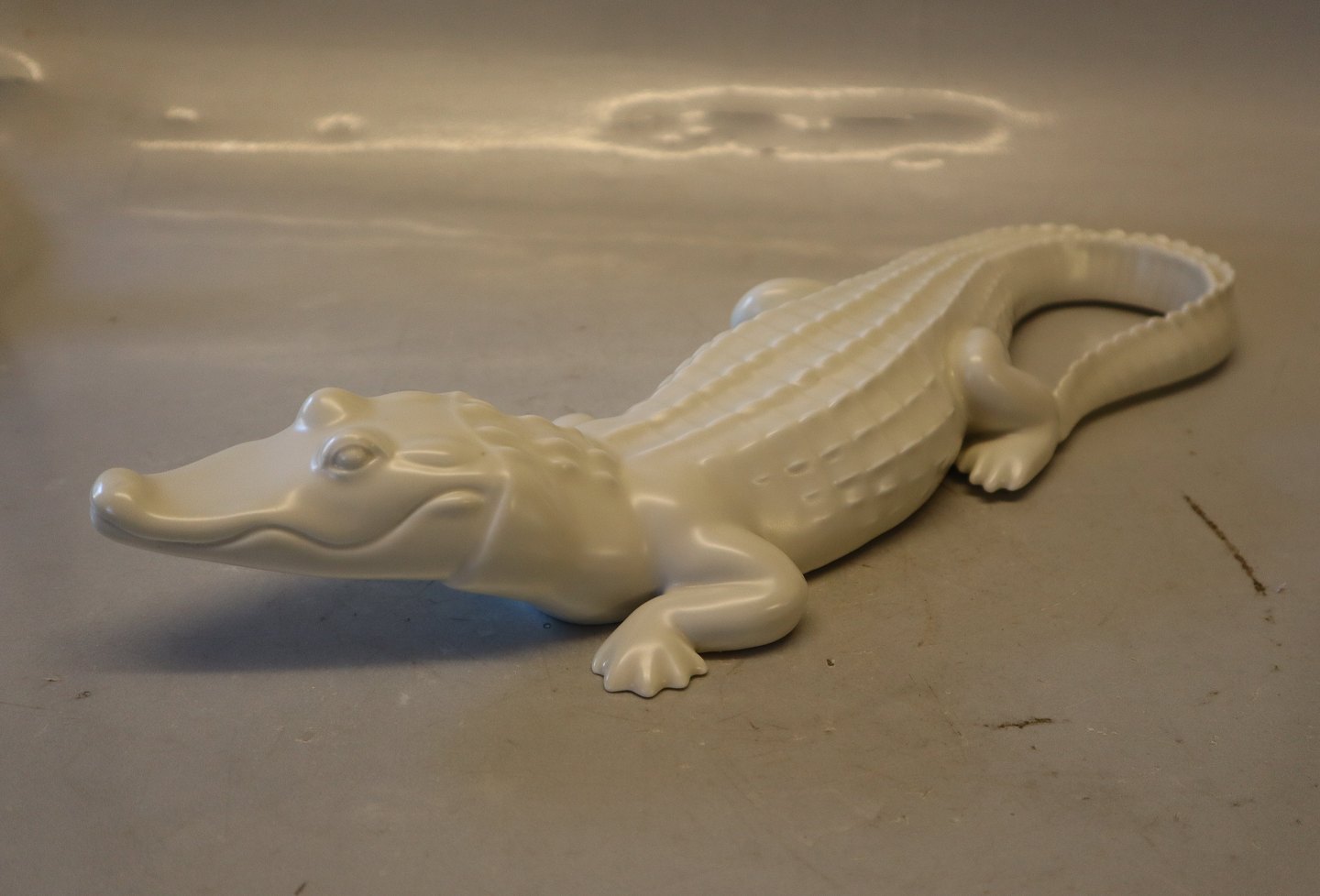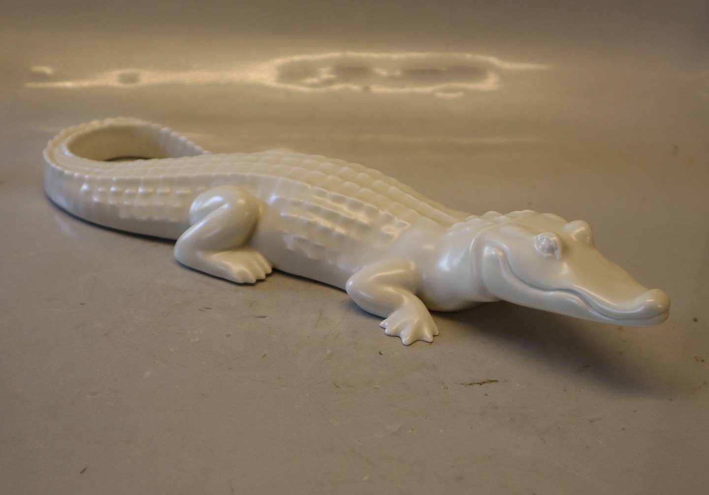 Bing & Grøndahl B&G 2155 Krokodille 6 x 38.5 cm, Mat glasur Celadon AJ Armand Petersen Kaiman